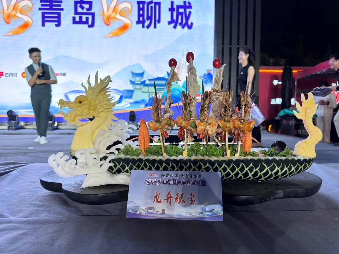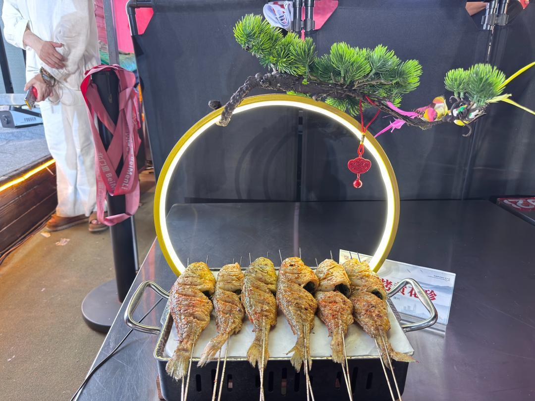 首轮肉串之战,淄博亮出北门里烧烤的“串山越海”——博山小串烧烤的典范;次轮海鲜登场,淄博火车站老魏烧烤“滋滋有味五花三鲜”惊艳亮相;蔬菜类比拼,淄博梦三关烧烤的“龙舟献宝”破浪而出;压轴自选环节,牧羊村烧烤“名羊四海”震撼全场。