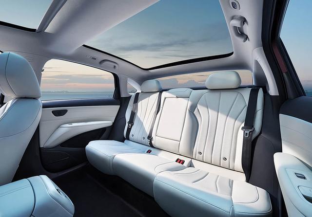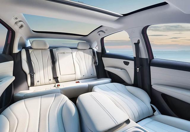 下面是车内后排的照片,可以看到新车的前排座椅在去掉头枕后可以与后排座椅相连,并形成大床模式。后排座椅还支持118度仰角,适当增加后排乘客的乘坐体验。其它配置方面,新车还有分体式天窗、物理遮阳帘等。